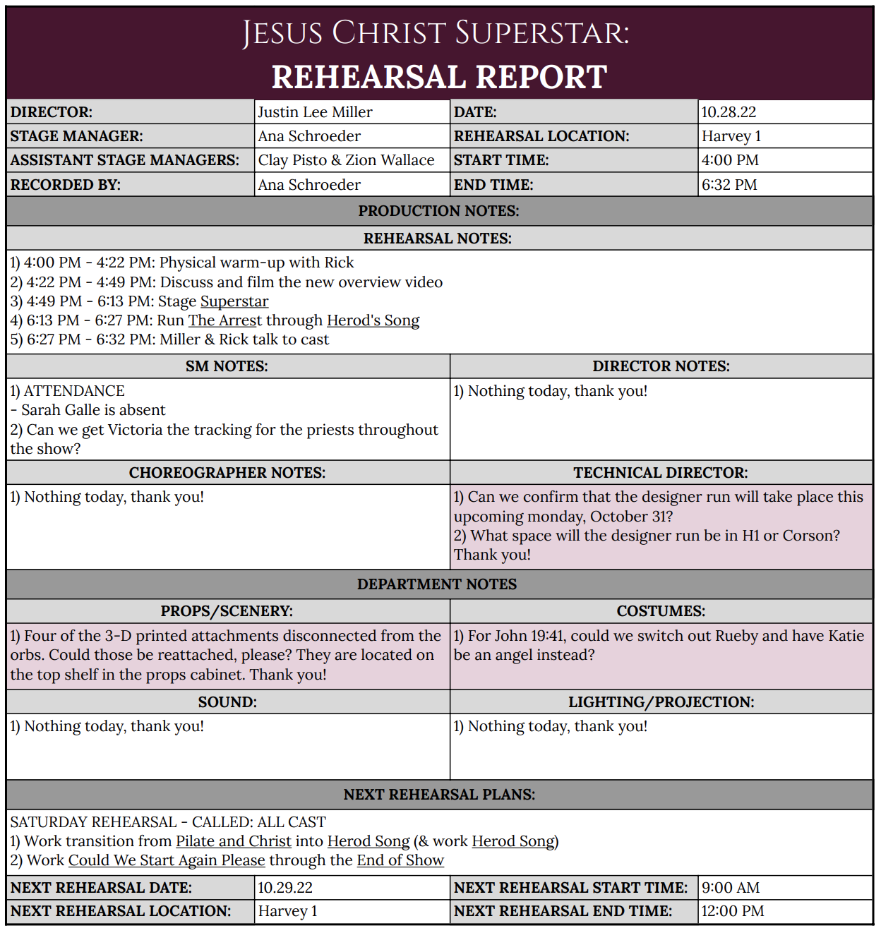 Actor/Scene Breakdown